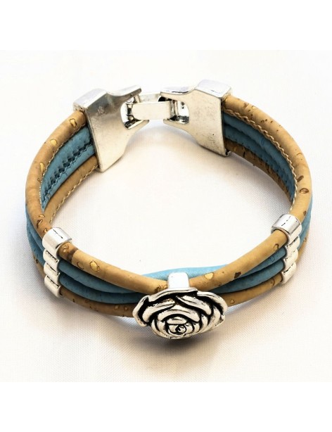 Bracelet en Liège coloré et naturel avec fleur argentée