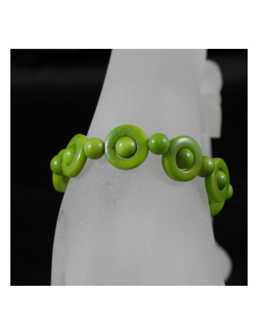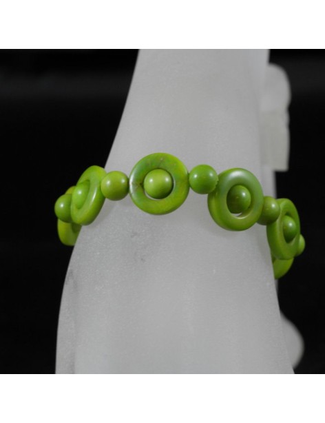 Bracelet monté sur fil élastique résistant avec des perles de tagua appelées aussi ivoire végétal ou corozo.