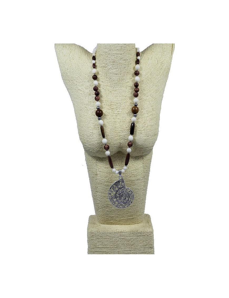 Sautoir en perles de tagua ou ivoire végétal teintées et naturelles