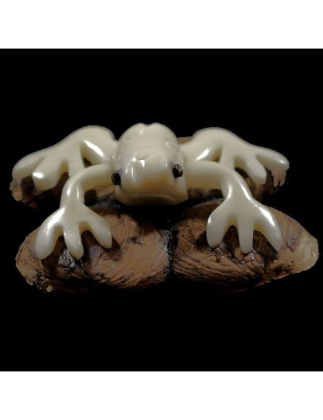 Grenouille taillée dans la graine de tagua appelée aussi ivoire végétal ou corozo.